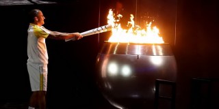 | Vanderlei Cordeiro de Lima acendendo a Pira Olimpíca |